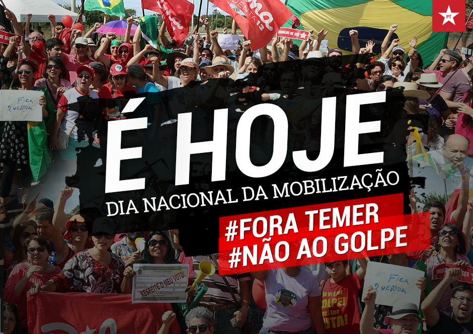 Hoje é dia Dia Nacional de Mobilização contra o golpe, com atos em todo o Brasil:Aracaju – SE | 15h – Praça General Valadão