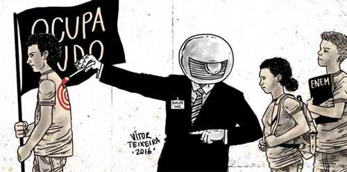 Charge - Milhares de escolas e universidades ocupadas e Globo estigmatiza estudantes